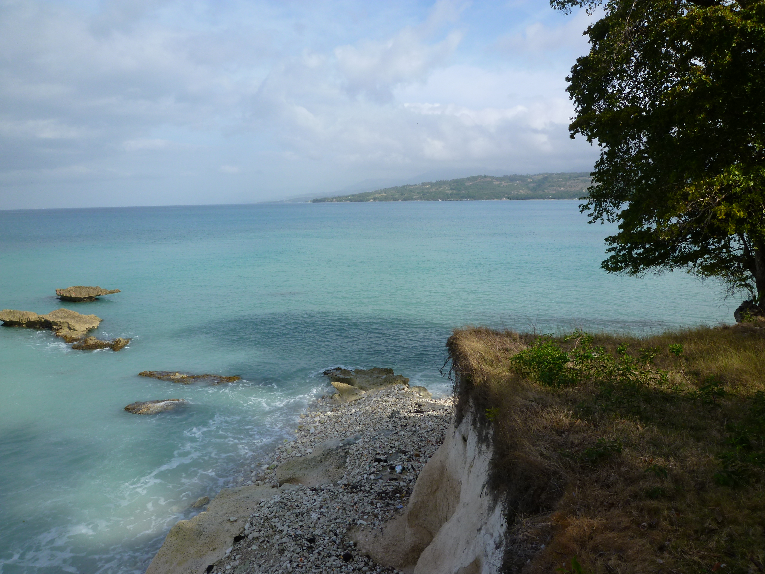 La route est lisse comme un ruban vert, couleur qui, peu à peu, domine. Dans ce pays malade de la déforestation, le contraste est saisissant. Vétivers, langaniers, fleurs tropicales à leur juste place. Dans la grande et magnifique courbe de Saint-Louis-du-Sud, à gauche s’ouvre un panorama de Méditerranée estivale. Grande baie de rêve sur la mer des Caraïbes.