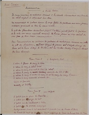 À noter dans l’anthologie de poésie contemporaine francophone, Poèmes à dire, présentée et choisie par Zéno Bianu (coll. Poésie des éd. Gallimard, CNDP), la présence d’Aimé Césaire avec « Tam-Tam I » et « Tam-Tam II », extraits des Armes miraculeuses et de Moi, laminaire ;