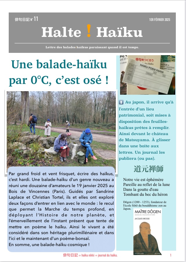 Par grand froid et vent frisquet, écrire des haïkus, c’est hardi. Une balade-haïku d’un genre nouveau a réuni une douzaine d’amateurs le 19 janvier 2025 au Bois de Vincennes (Paris).