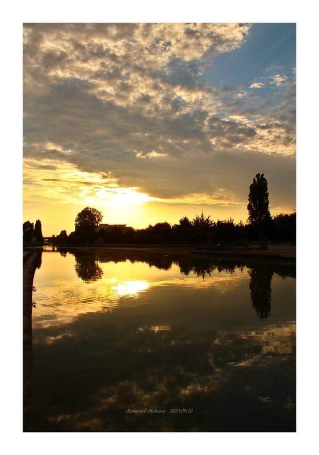 Dans le cas de cette photo prise sur les berges du canal de l’Ourcq, il y a l’idée de l’entre-deux. Le crépuscule étant ce moment de l’entre-deux, le seuil. La luminosité imposante devient seuil dès lors que le regard n’atteint pas l’au-delà de la lumière. De même pour la douceur d’un soleil couchant par l’émotion qu’il suscite.
